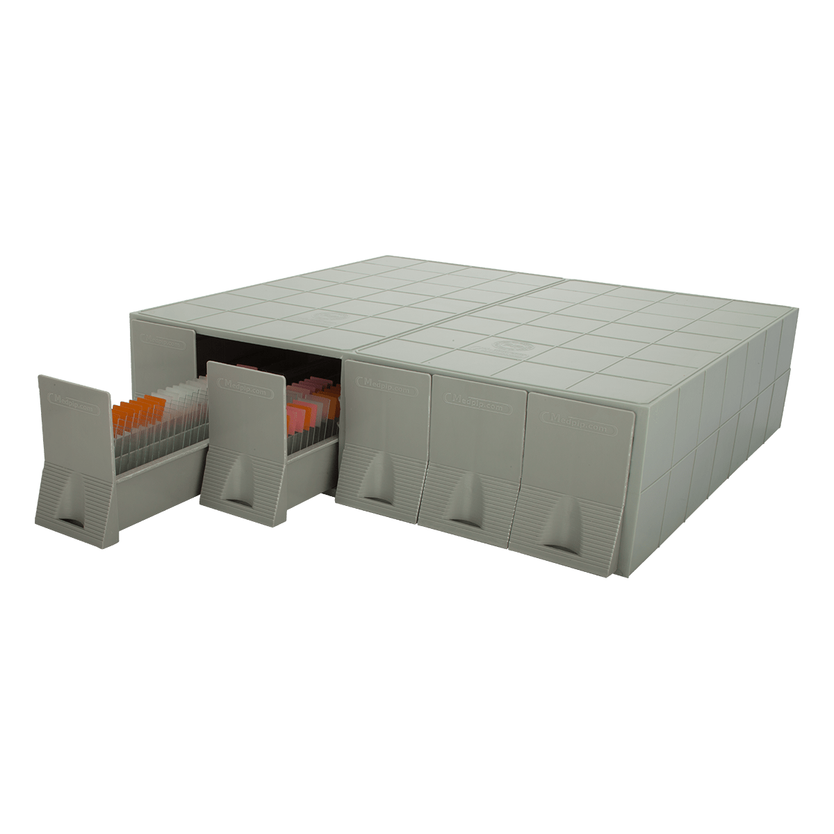 در واحدهای پاتولوژی بیمارستانها و بخشهای مختلف آزمایشگاهها، به دلیل نیاز به بررسی و یا تهیه مجدد یک لام از یک بلوک بافت خاص، سازماندهی، بایگانی و نگهداری طولانی مدت نمونهها از اهمیت ویژهای برخوردار میباشد. با توجه به ضرورت و حساسیت بازیابی نمونهها، فایلهای .P.I.P دارای ویژگیهای منحصر بفردی میباشند. این فایلها از پلاستیک ABS ساخته شده و در مقایسه با نمونههای فلزی دارای وزن کمی هستند. در مناطق با رطوبت بالا دچار زنگ زدگی نشده و همچنین در مقایسه با نمونههای چوبی دچار پوسیدگی و کپک زدن نمیشود. کشوهای آن به نرمی حرکت کرده و امکان قراردهی تعداد زیادی از فایلها بر روی هم وجود دارد. عدم وجود لبههای تیز و در نتیجه عدم وجود خطر جراحت در هنگام استفاده از دیگر ویژگیهای این محصول میباشد.